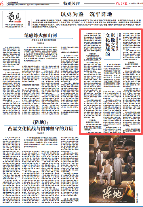 《阵地》所再现的文化抗战历史、塑造的知识分子群像及凝聚的文艺抗战策略,不仅具有历史价值,也为当下文化阵地建设提供了启示。新时代的文艺工作者唯有赓续前辈风骨,扎根现实土壤,以精品力作回应人民与时代的呼唤,才能为激荡时代筑牢精神根基。